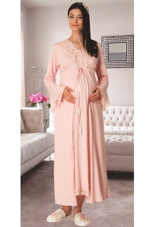 Effortt 8045 Pudra Kolay Emzirme Ozellikli Sabahlikli Hamile Lohusa Gecelik Takimi Satin Al Lohusam