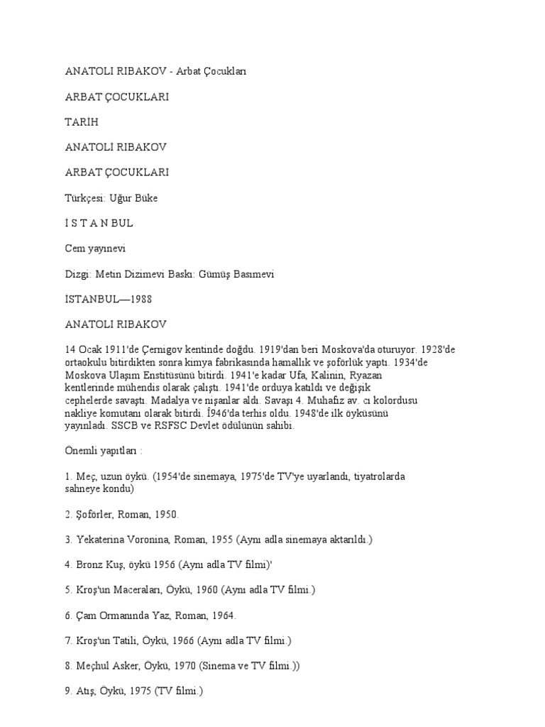 Anatoli Ribakov Arbat Cocuklari